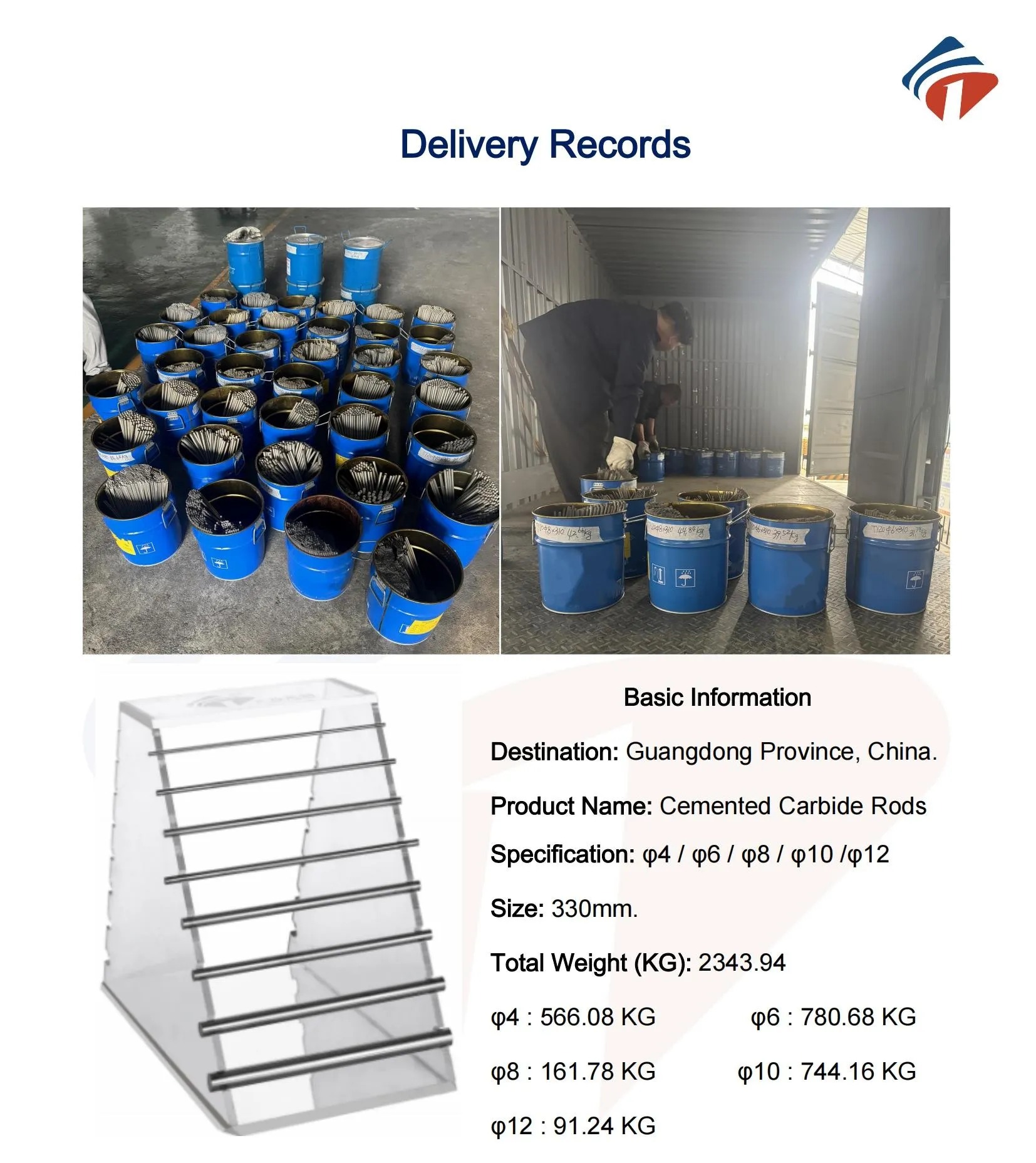 GuangDong'a 2349KG Tungsten Karbür Çubuk Teslimatı.